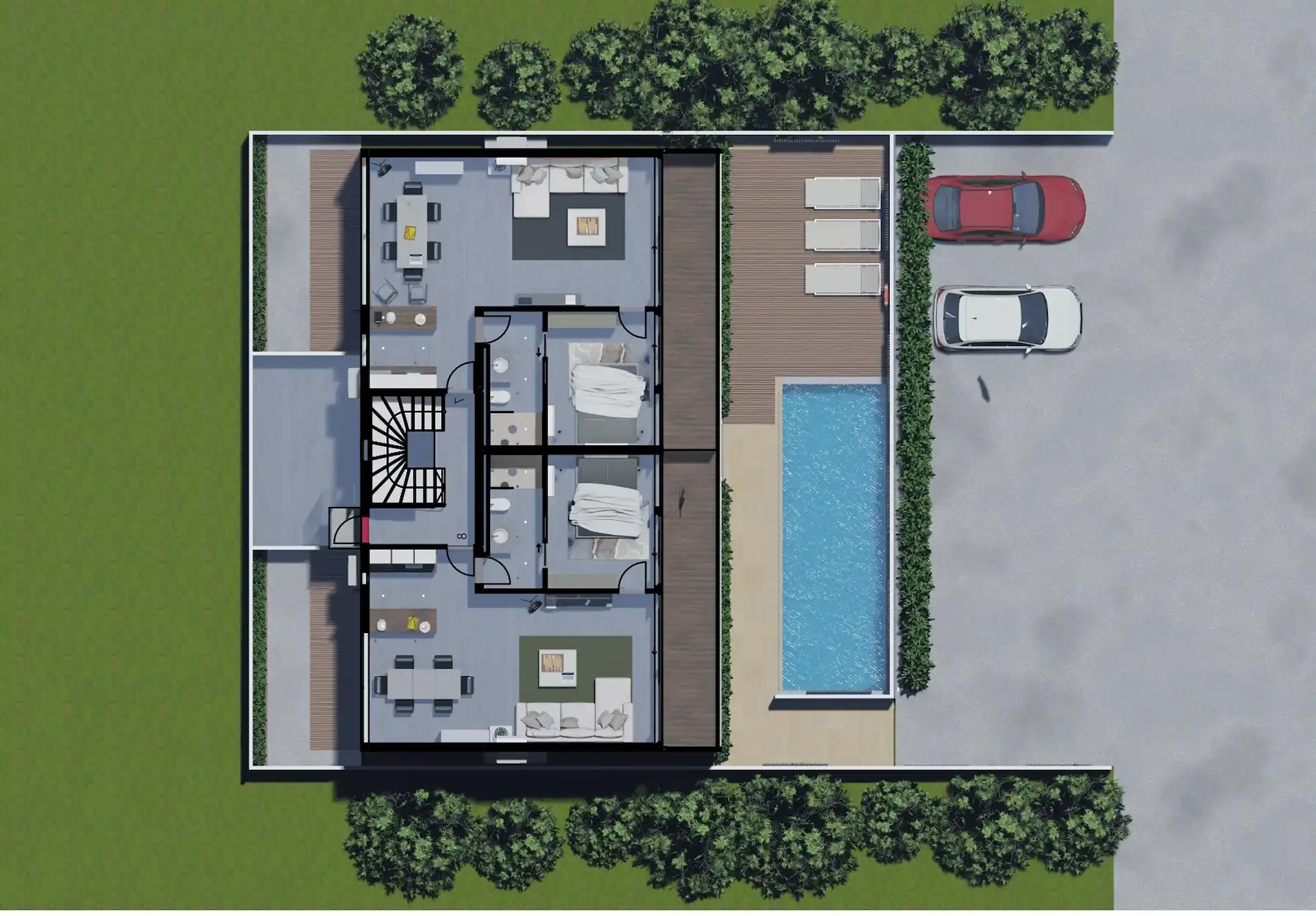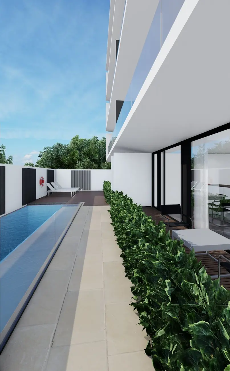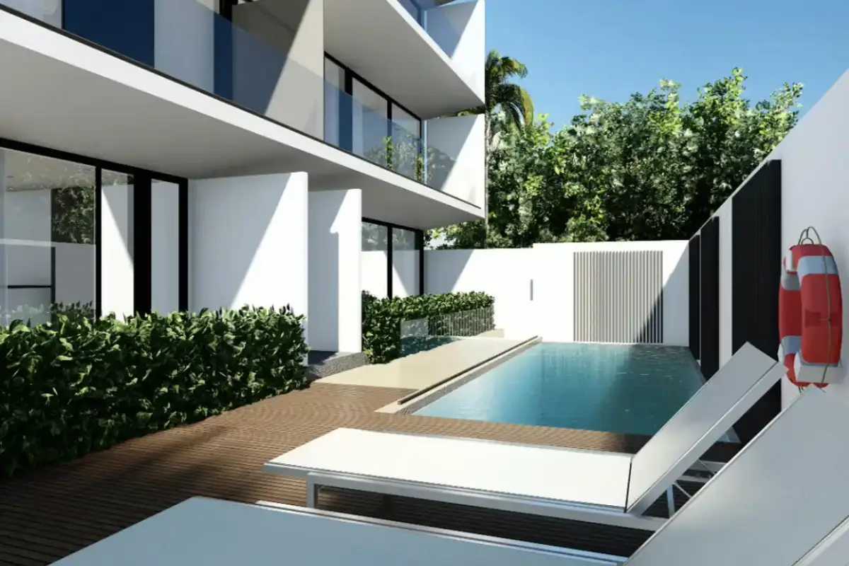 Die Anlage umfasst nur acht Einheiten und richtet sich bewusst an Käufer, die eine überschaubare, hochwertige Struktur ohne klassische Resort-Atmosphäre suchen. Ergänzt wird das Projekt durch einen gemeinsamen Pool, Parkmöglichkeiten und eine zentrale Lage mit direkter Anbindung an Infrastruktur und Strand.
